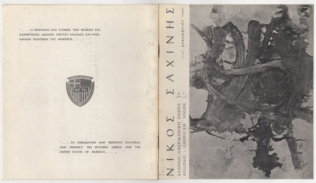 Έντυπο, χαρτί, 4 φφ, 20×17.5 εκ., στα ελληνικά και σε αγγλική μετάφραση έκθεσης του Νίκου Σαχίνη.
