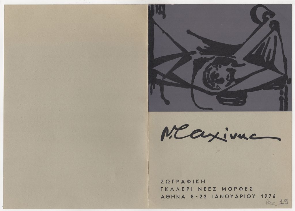 Έντυπο, χαρτόνι, 24,5×17 εκ., στα ελληνικά, έκθεσης του Νίκου Σαχίνη.
