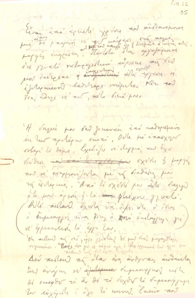 Κείμενο, χειρόγραφο, χαρτί διπλής όψεως, 30×19,5εκ, στα ελληνικά, του Αχιλλέα Απέργη για το έργο του.