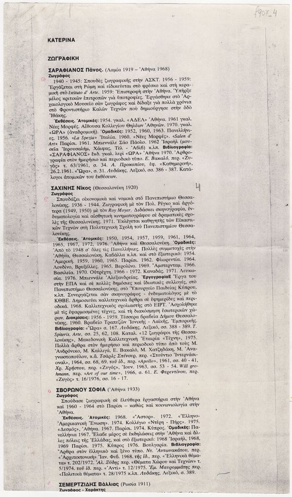 Δίνονται τα βιογραφικά σημειώματα των Πάνου Σαραφιανού, Νίκου Σαχίνη και Σοφίας Σβορώνου, όπως δημοσιεύτηκαν στον τόμο του Τώνη Σπητέρη με τίτλο “Τρεις αιώνες νεοελληνικής τέχνης”.