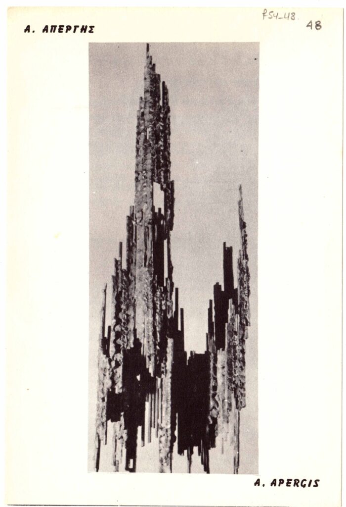 Έντυπο, χαρτόνι, 21,5×14,5 εκ, έκθεσης του Αχιλλέα Απέργη. Περιέχει βιογραφικό σημείωμα και σε αγγλική μετάφρασή του και αποσπάσματα Τύπου. Ειδικότερα παρατίθενται :