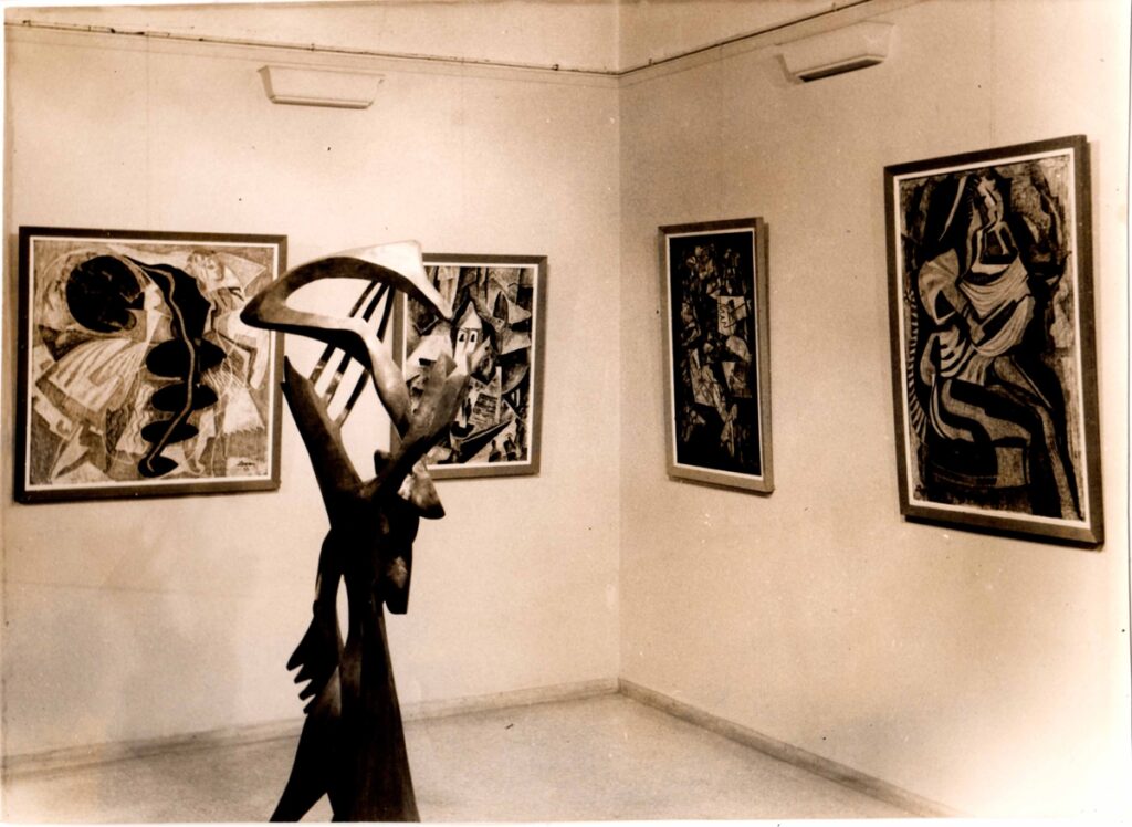 Κώστας Ανδρέου (1917 - 2007) ; Ιωάννα Σπητέρη-Βεροπούλου (1920 - 2000) ; René Huyghe (1906 - 1997) ; Μπέλλα Ραφτοπούλου (1902 - 1992) ; Αχιλλέας Απέργης (1909 - 1986) ; Άλεξ Μυλωνά (1923 - 2016) ; Κώστας Κουλεντιανός (1918 - 1995) ; Τάκις (1925 - 2019) ; Antoine Pevsner ; Αγλαΐα Λυμπεράκη (1923 - 1985) ; Antoine Bourdelle (1861 - 1929) ; Emily Evershed ; Dennis Gilbert ; Hugh Newbury ; Ralph de Saram ; Richard Waterhouse ; Katherine Watson