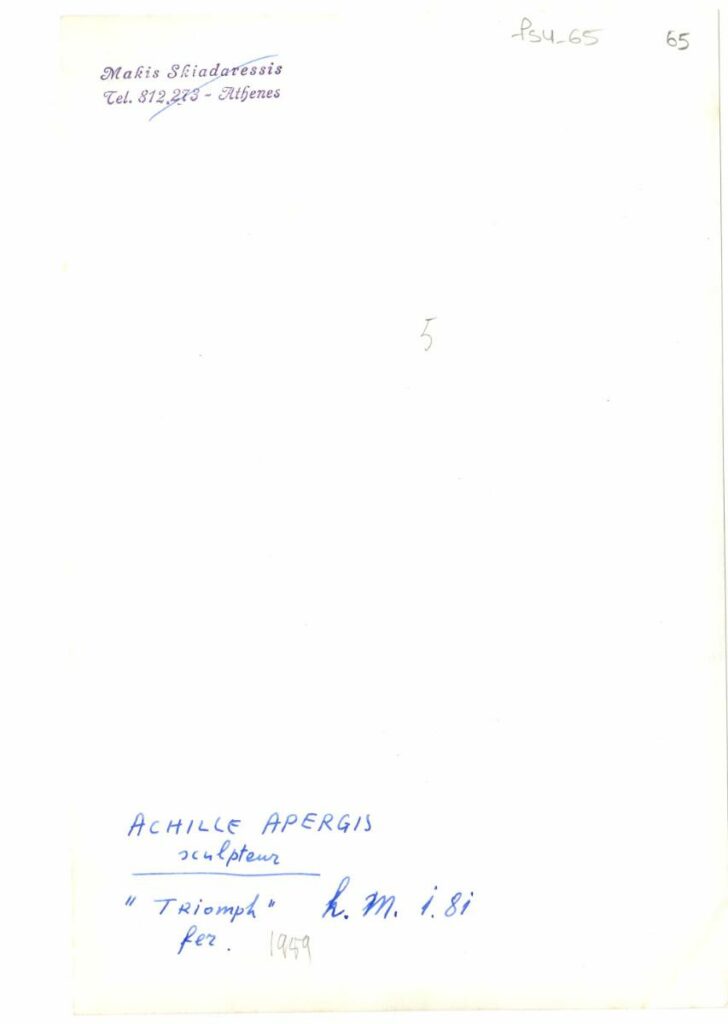 Achille Apergis, sculpteur, 'Triomph', fer, h. m. 1,81.