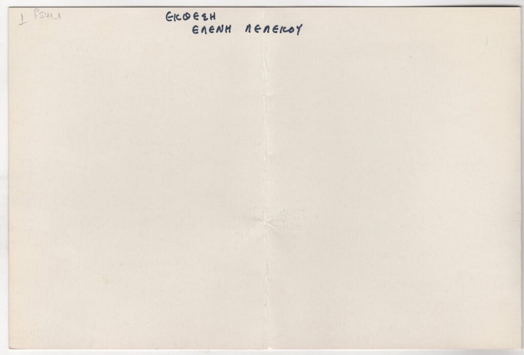 Έντυπο, χαρτόνι αναδιπλωμένο, 16×23,5 εκ., στα ελληνικά, έκθεσης ζωγραφικής της Ελένης Λελέκου.