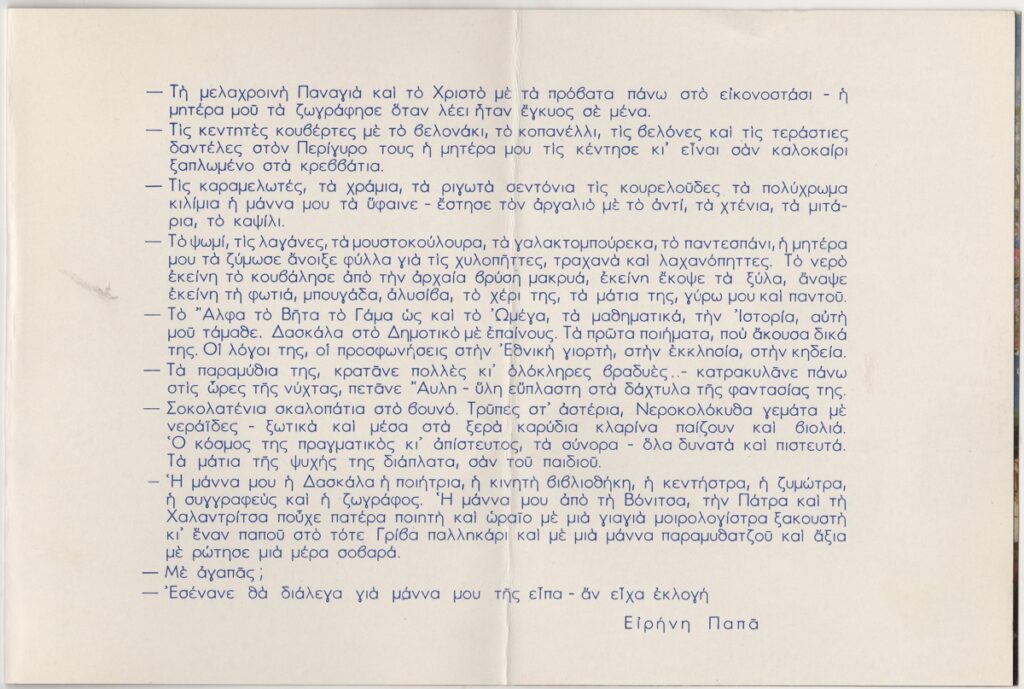 Περιέχει κείμενο της Ειρήνης Παπά και εικονογράφηση.