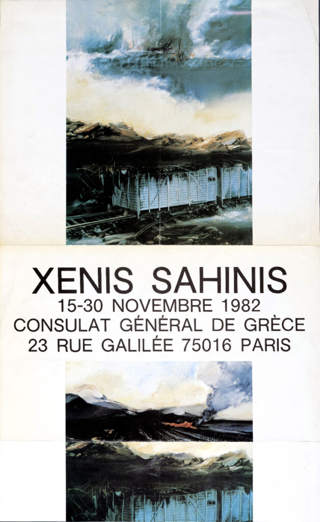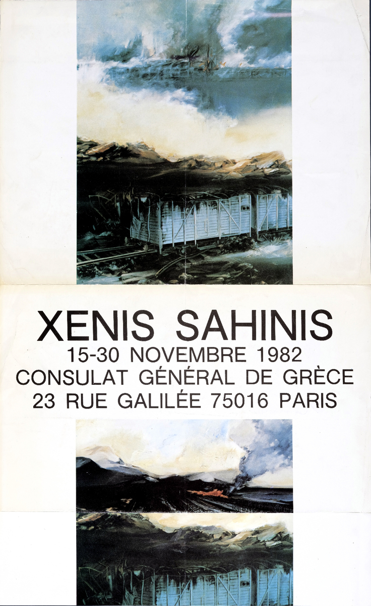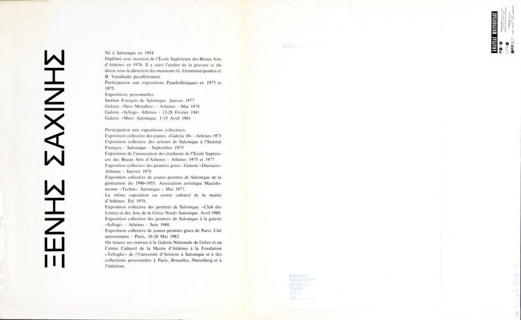 Έντυπο ατομικής έκθεσης του Ξενή Σαχίνη στο Γαλλικό Προξενείο Ελλάδας στο Παρίσι.