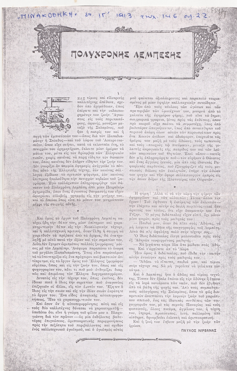 Παύλος Νιρβάνας (1866 - 1937) - Κριτικός
