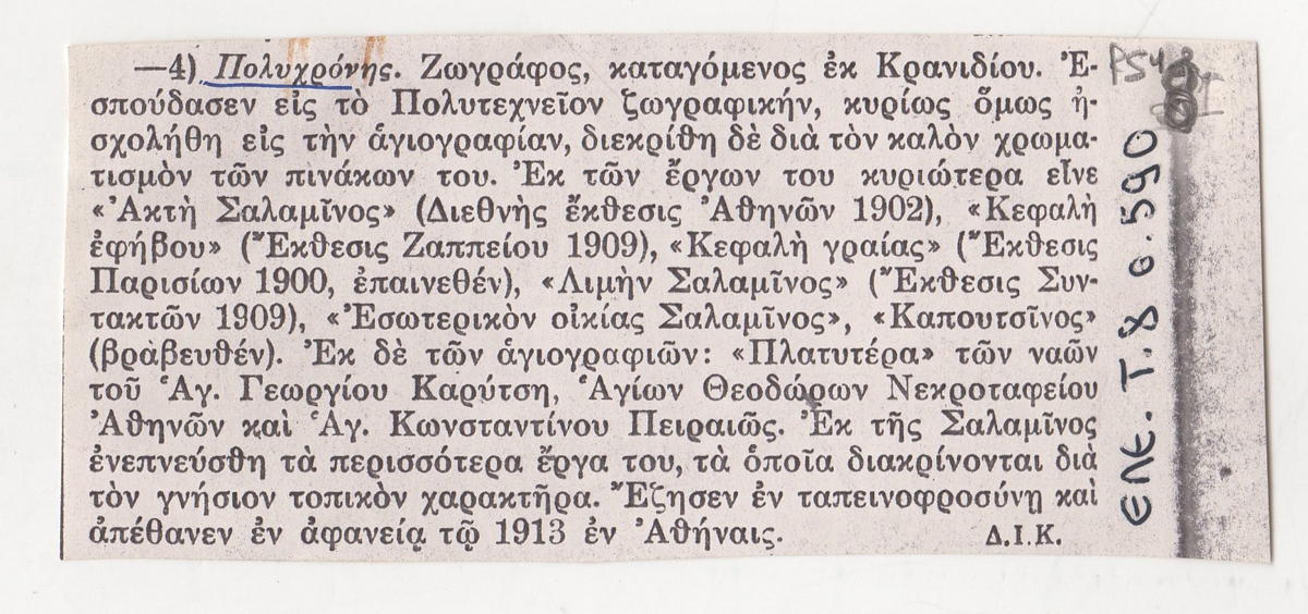 Φωτοαντίγραφο, χαρτί, 4,5×10 εκ., στα ελληνικά, βιογραφικού σημειώματος του Πολυχρόνη Λεμπέση.