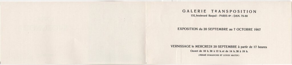 Πρόσκληση, χαρτί ιλλουστρασιόν, 7.5×17.5 εκ., στα γαλλικά, εγκαινίων έκθεσης ζωγραφικής της Σοφίας Σβορώνου.