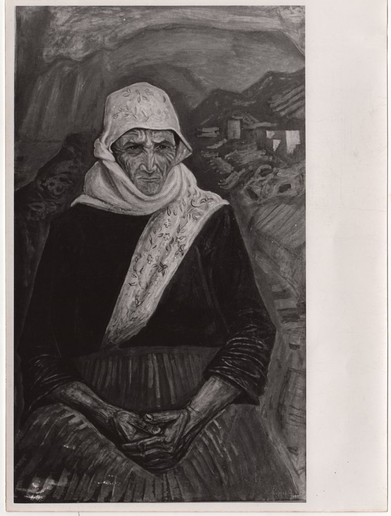 Φωτογραφία, α/μ, φωτογραφικό χαρτί Agfa Brovira, 17,6×23,5 εκ. Αναπαραγωγή έργου του Βάλια Σεμερτζίδη (προσωπογραφία). Στην πίσω όψη, επιγραφή.