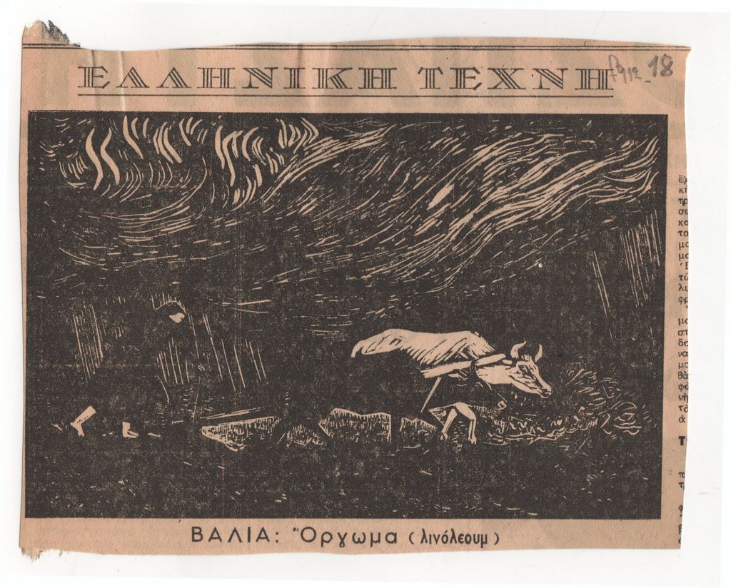 Απόκομμα, έντυπο, χαρτί, 11,5×15,0 εκ. Αναπαραγωγή έργου του Βάλια Σεμερτζίδη.