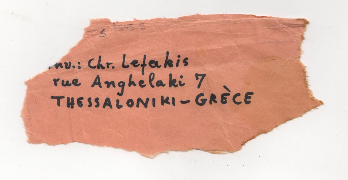 Απόκομμα, χαρτί, 7×14 εκ., με χειρόγραφη επιγραφή, που φέρει τη διεύθυνση του Χρήστου Λεφάκη.