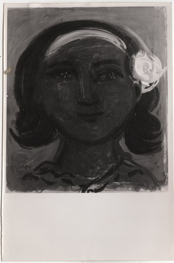 Φωτογραφία, α/μ, φωτογραφικό χαρτί, 18,0×12,0 εκ. Αναπαραγωγή του έργου του Τάκη Σιδέρη “Κοριτσάκι” (αυγοτέμπερα). Στην πίσω όψη, επιγραφή με τα στοιχεία του έργου.