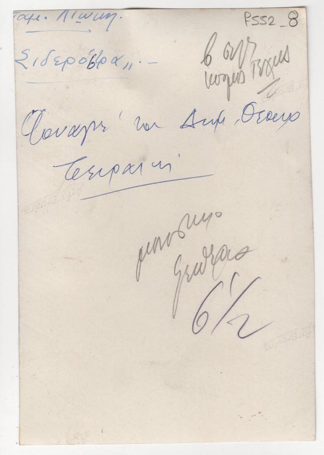 Στο Αρχείο Τώνη Π. Σπητέρη φυλάσσεται και δεύτερο αντίτυπο της φωτογραφίας σε μεγαλύτερες διαστάσεις (15,0x13,1 εκ. Στην πίσω όψη επιγραφή, χειρόγραφη, με μπλε μελάνι, στα ελληνικά: "Επαμ. Λιώκη - Σιδερόστρα"). Στην εγγραφή περιλαμβάνονται ψηφιακά αρχεία εικόνας και για τα δύο τεκμήρια.