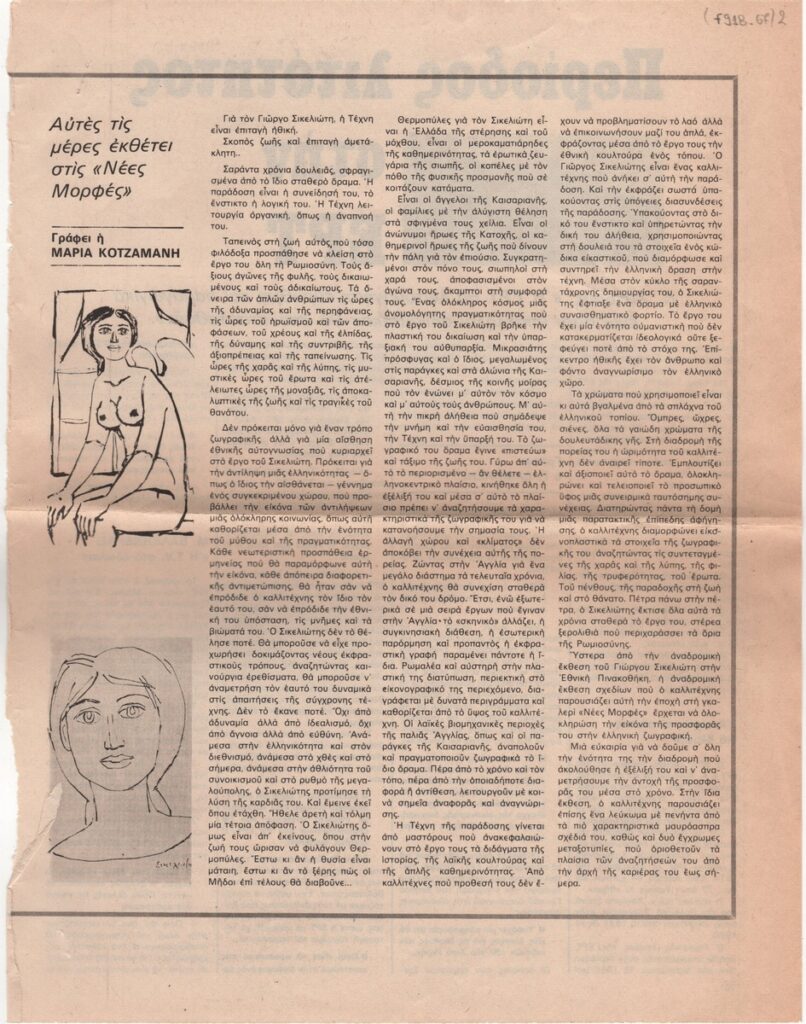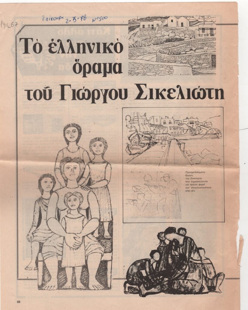 Απόκομμα του περιοδικού “Επίκαιρα” (02/03/1978), όπου δημοσιεύεται άρθρο της Μαρίας Κοτζαμάνη για την ατομική έκθεση έργων του Γ. Σικελιώτη στην Αθήνα.
