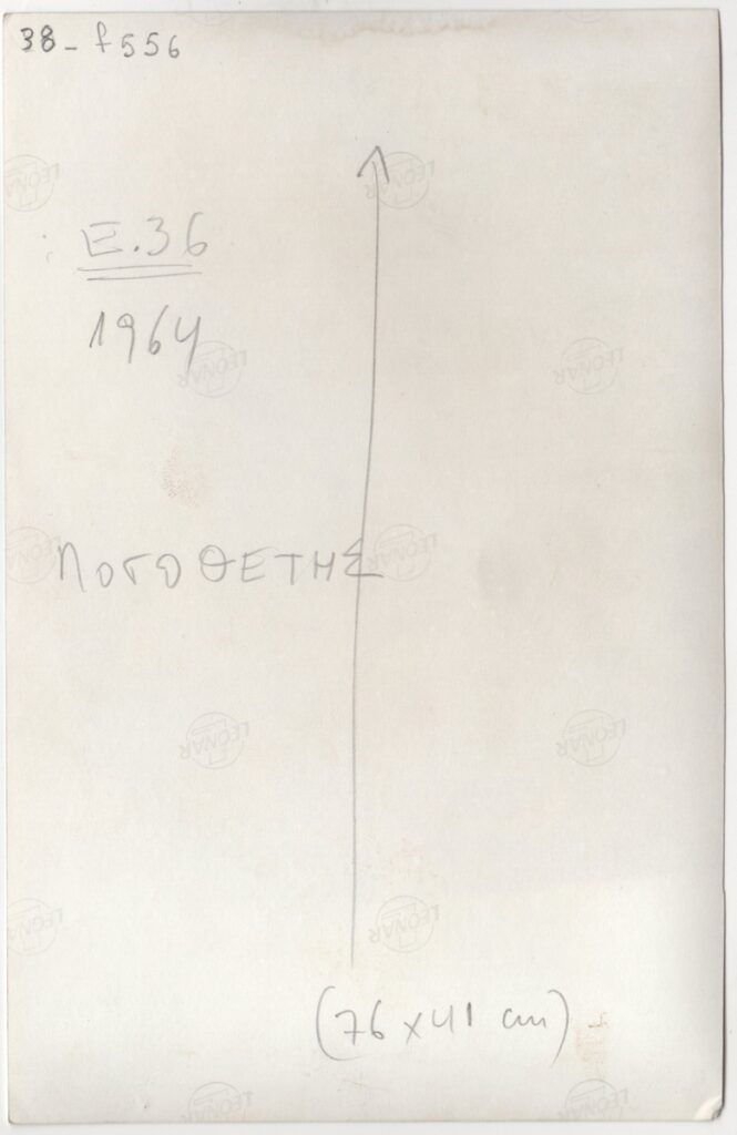 Φωτογραφία έργου, α/μ, σε φωτογραφικό χαρτί, 17,8×11,5 εκ. Στην πίσω όψη επιγραφή με τα στοιχεία του έργου.