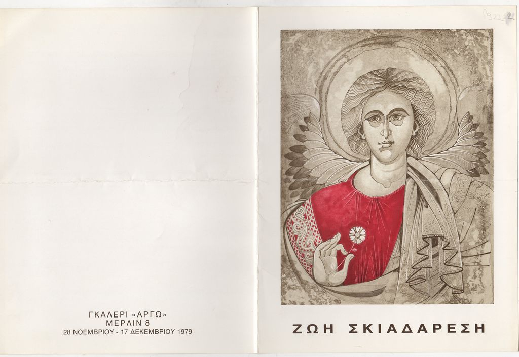 Έντυπο, χαρτόνι αναδιπλωμένο, 22×16.5 εκ., στα ελληνικά, έκθεσης της Ζωής Σκιαδαρέση.