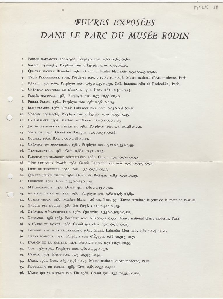 Κατάλογος, χαρτόνι, 31×23,5 εκ., στα γαλλικά, έργων του Γεράσιμου Σκλάβου που παρουσιάζονται σε έκθεσή στο Παρίσι.