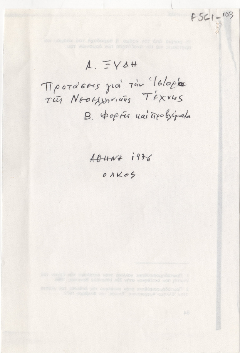 Ξύδης, Αλέξανδρος. Προτάσεις για την ιστορία της νεοελληνικής τέχνης, Α-B-Γ, Αθήνα, Ολκός, 1976.