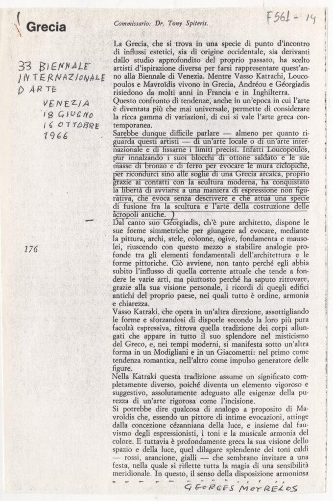 Κείμενο για την ελληνική συμμετοχή στην 33η Μπιεννάλε Βενετίας