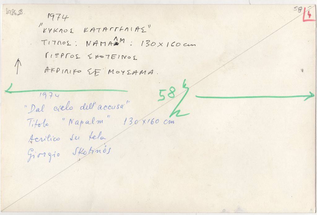 Φωτογραφία, α/μ, φωτογραφικό χαρτί, 15,5×23,5 εκ., έργου του Γιώργου Σκοτεινού, που εντάσσεται στον “Κύκλο Καταγγελίας” του καλλιτέχνη, σειρά έργων του με την οποία εκφράζει τη δυσαρέσκειά του για την πολιτική κατάσταση της Κύπρου.