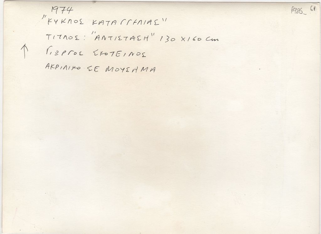 Φωτογραφία, α/μ, φωτογραφικό χαρτί, 17×23 εκ., έργου του Γιώργου Σκοτεινού, που εντάσσεται στον “Κύκλο Καταγγελίας” του καλλιτέχνη, σειρά έργων του με την οποία εκφράζει τη δυσαρέσκειά του για την πολιτική κατάσταση της Κύπρου.