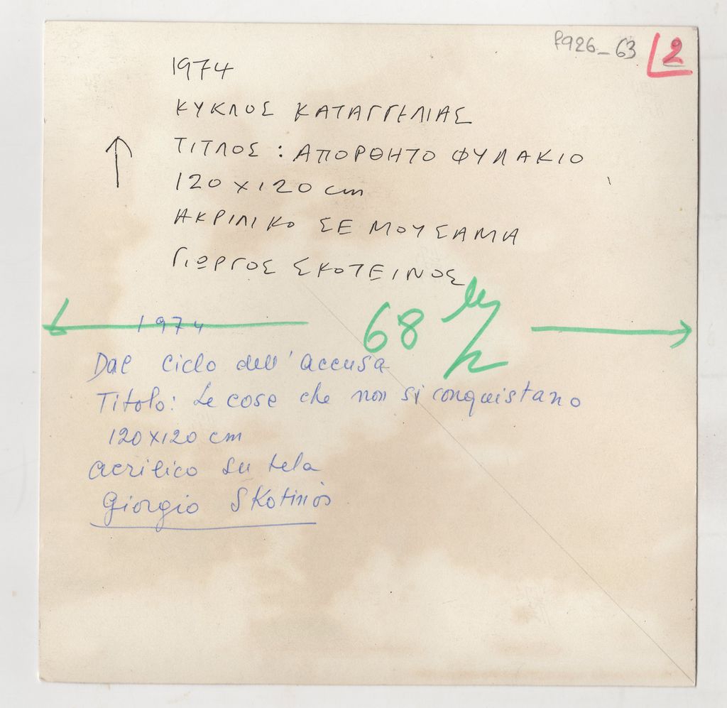 Φωτογραφία, α/μ, φωτογραφικό χαρτί, 16×16 εκ., έργου του Γιώργου Σκοτεινού, που εντάσσεται στον “Κύκλο Καταγγελίας” του καλλιτέχνη, σειρά έργων του με την οποία εκφράζει τη δυσαρέσκειά του για την πολιτική κατάσταση της Κύπρου.