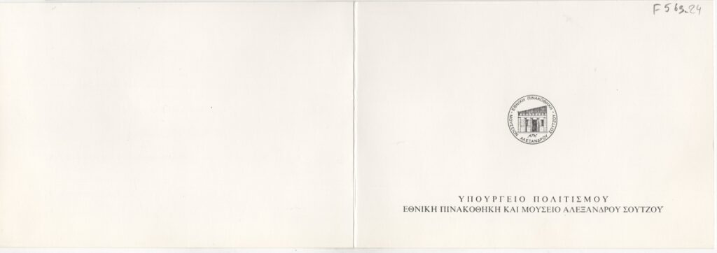 Πρόσκληση, χαρτόνι αναδιπλωμένο, 11×16 εκ., στα ελληνικά, ατομικής έκθεσης γλυπτικής της Αγλαΐας Λυμπεράκη.