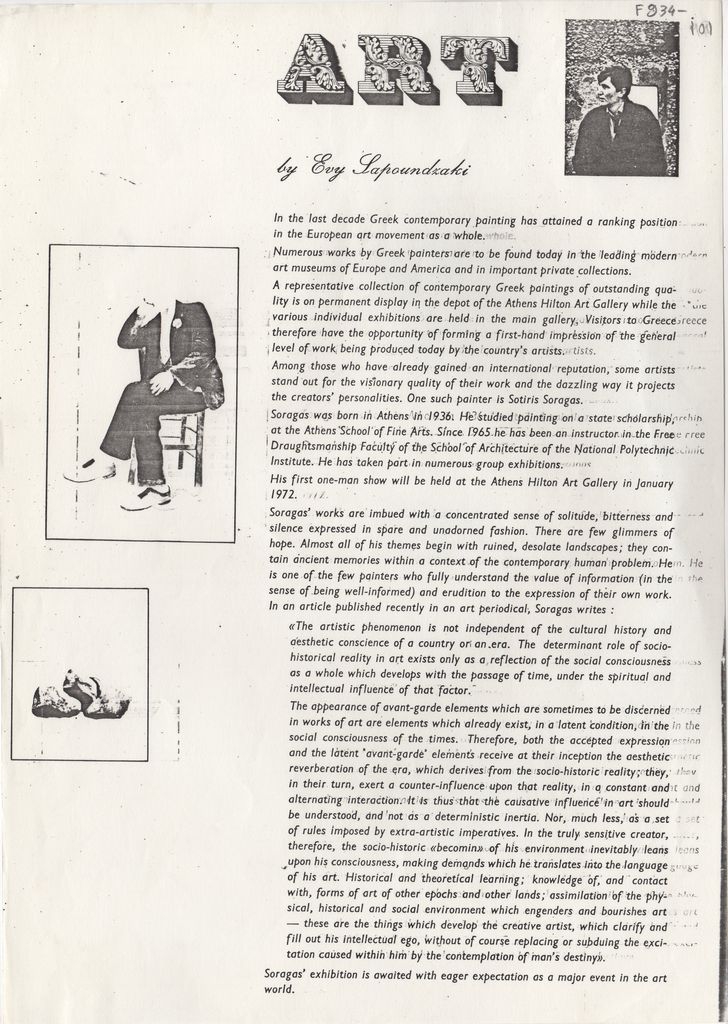 Φωτοαντίγραφο, χαρτί, 29.5×21 εκ., στα αγγλικά, κειμένου αναφερόμενου στον Σωτήρη Σόρογκα.