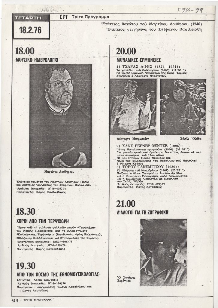 Ραδιοφωνικής εκπομπής: 18/02/1976