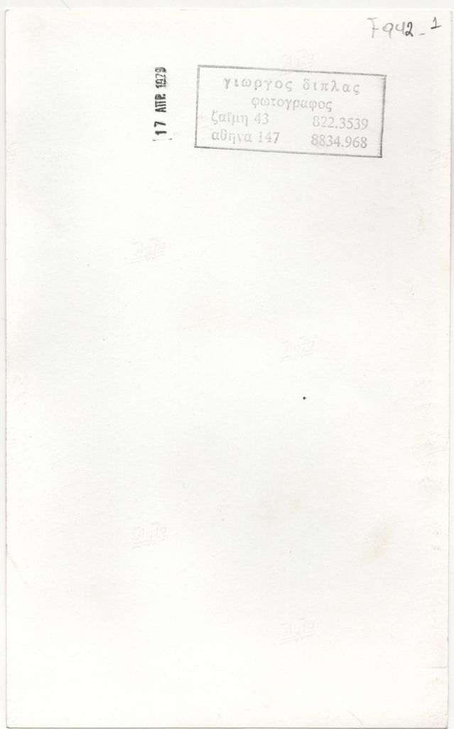 Στην πίσω όψη, σφραγίδα του φωτογράφου Γιώργου Δίπλα και ημερομηνία.
