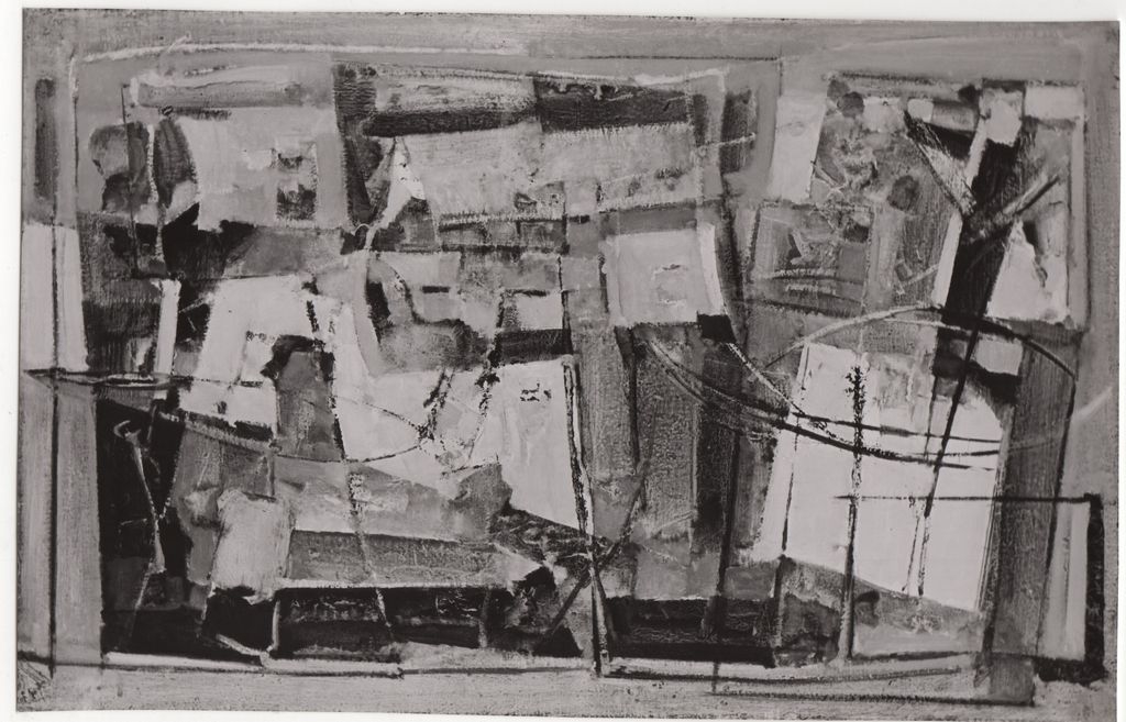 Φωτογραφία, α/μ, φωτογραφικό χαρτί, 11,0×17,0 εκ. Αναπαραγωγή του έργου του Γιάννη Σπυρόπουλου “Μεσημέρι”, 05/1959. Στην πίσω όψη, επιγραφή με τα στοιχεία του έργου και σφραγίδα του φωτογράφου Μάκη Σκιαδαρέση.
