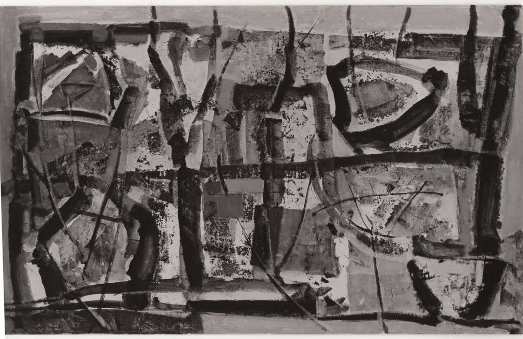 Φωτογραφία, α/μ, φωτογραφικό χαρτί, 14,5×23,2 εκ. Αναπαραγωγή του έργου του Γιάννη Σπυρόπουλου “Χειμώνας”, αρχές 1959. Στην πίσω όψη, επιγραφή με τα στοιχεία του έργου και σφραγίδα του φωτογράφου Μάκη Σκιαδαρέση.