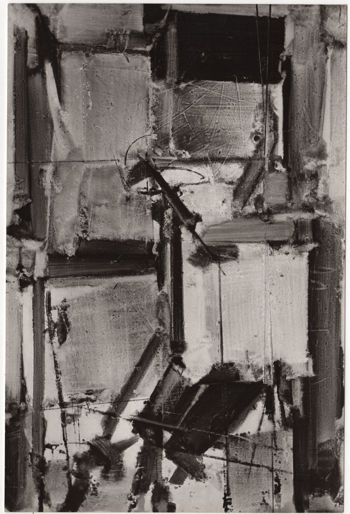 Φωτογραφία, α/μ, φωτογραφικό χαρτί, 23,5×15,6 εκ. Αναπαραγωγή έργου του Γιάννη Σπυρόπουλου. Στην πίσω όψη, επιγραφή με τα στοιχεία του έργου και σφραγίδα του φωτογράφου Μάκη Σκιαδαρέση.