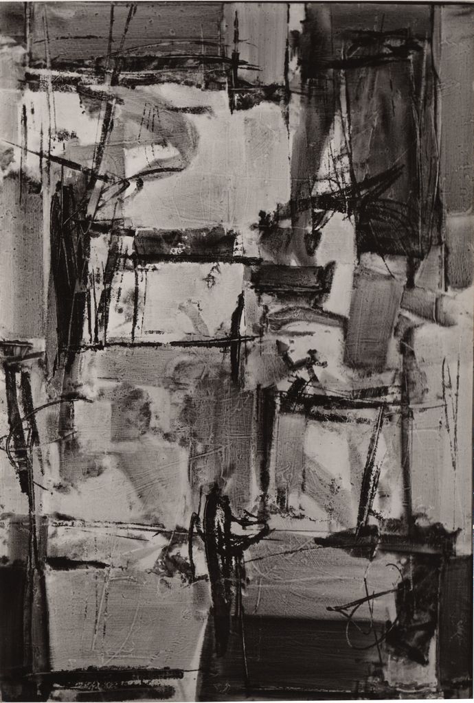 Φωτογραφία, α/μ, φωτογραφικό χαρτί, 23,2×15,8 εκ. Αναπαραγωγή έργου του Γιάννη Σπυρόπουλου. Στην πίσω όψη, σημείωση με τα στοιχεία του έργου και σφραγίδα του φωτογράφου Μάκη Σκιαδαρέση..