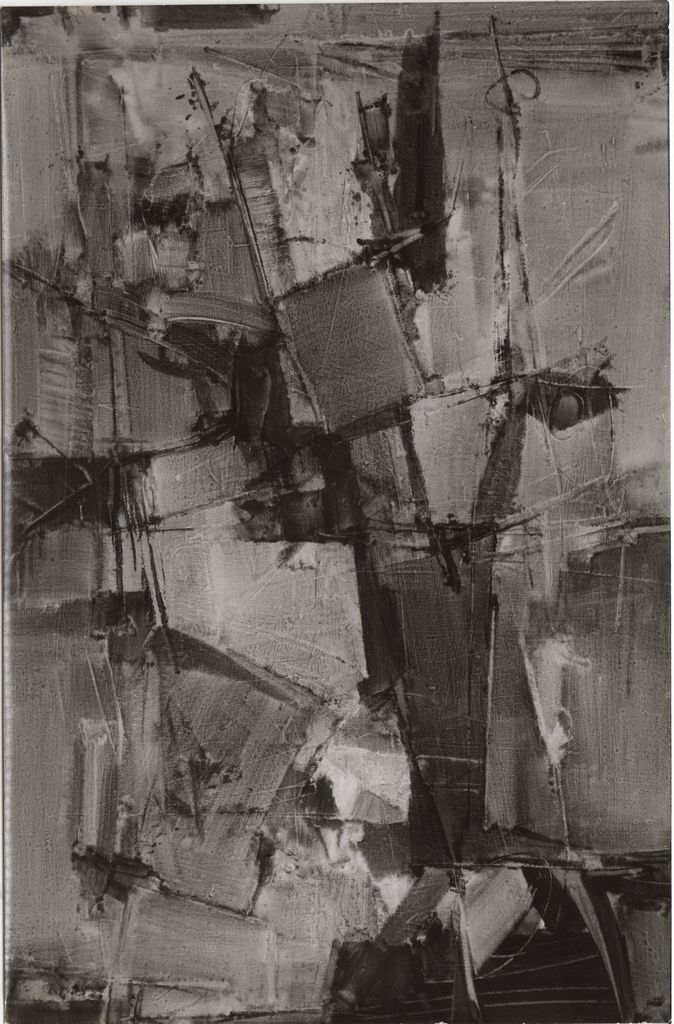Φωτογραφία, α/μ,φωτογραφικό χαρτί, 23,3×15,2 εκ. Αναπαραγωγή του έργου του Γιάννη Σπυρόπουλου “Χρησμός”, λάδι, 1960. Στην πίσω όψη, σημείωση με τα στοιχεία του έργου.