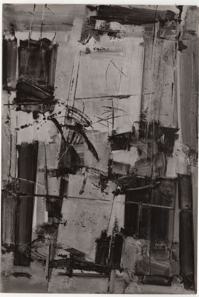 Φωτογραφία, α/μ, φωτογραφικό χαρτί, 23,5×16,0 εκ. Αναπαραγωγή έργου του Γιάννη Σπυρόπουλου. Στην πίσω όψη, επιγραφές και σφραγίδα του φωτογράφου Μάκη Σκιαδαρέση.
