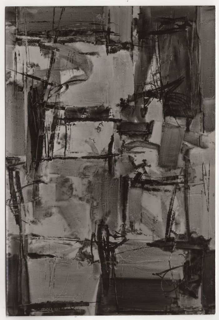 Φωτογραφία, α/μ, φωτογραφικό χαρτί, 23,6×16,0 εκ. Αναπαραγωγή έργου του Γιάννη Σπυρόπουλου. Στην πίσω όψη, επιγραφές και σφραγίδα του φωτογράφου Μάκη Σκιαδαρέση.