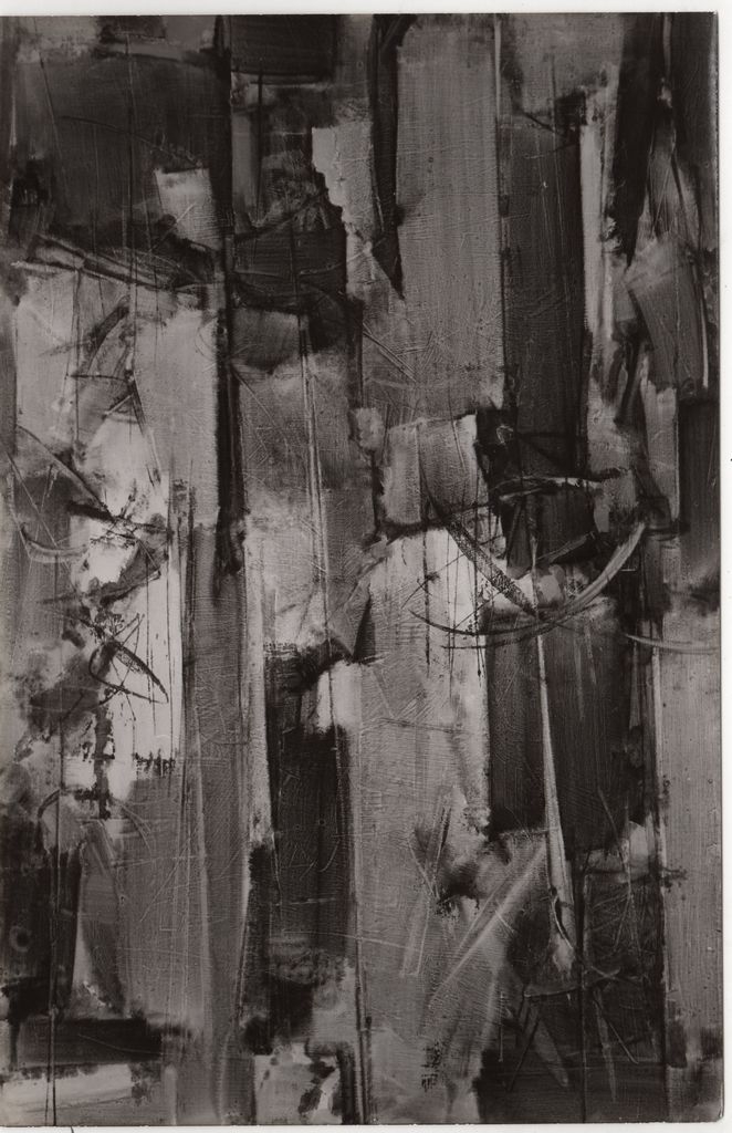 Φωτογραφία, α/μ, φωτογραφικό χαρτί, 24,0×14,5 εκ. Αναπαραγωγή έργου του Γιάννη Σπυρόπουλου. Στην πίσω όψη, σφραγίδα του φωτογράφου Μάκη Σκιαδαρέση.