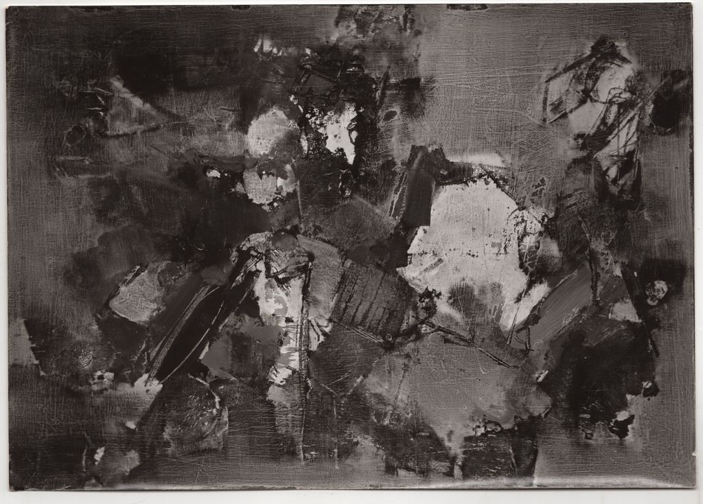 Φωτογραφία, α/μ, φωτογραφικό χαρτί, 16,3×23,0 εκ. Αναπαραγωγή έργου του Γιάννη Σπυρόπουλου. Στην πίσω όψη, επιγραφή με τα στοιχεία του έργου και σφραγίδα του καλλιτέχνη.