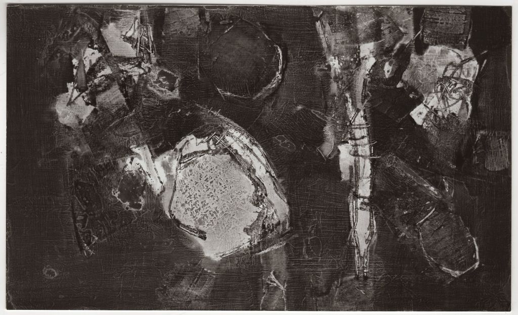 Φωτογραφία, α/μ, φωτογραφικό χαρτί, 14,0×23,0 εκ. Αναπαραγωγή έργου του Γιάννη Σπυρόπουλου. Στην πίσω όψη, επιγραφή με τα στοιχεία του έργου και σφραγίδα του καλλιτέχνη.