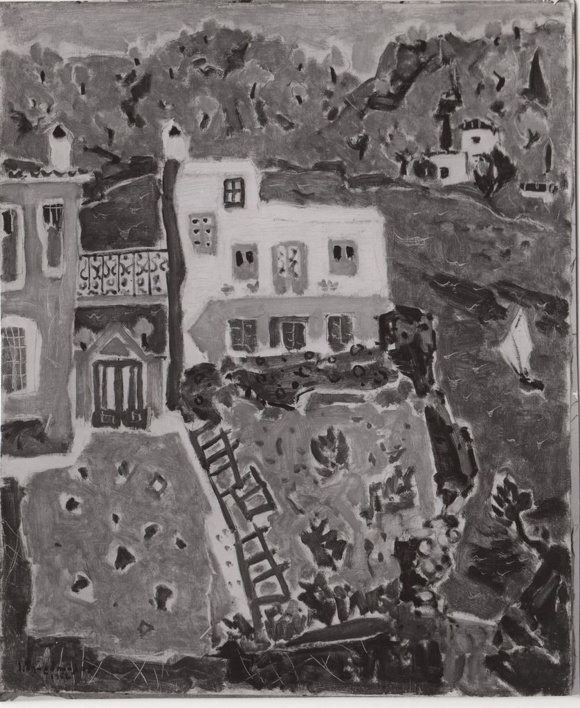 Φωτογραφία, α/μ, φωτογραφικό χαρτί, 13,5×11,2 εκ. Αναπαραγωγή έργου του Γιάννη Σπυρόπουλου, 1953. Στην πίσω όψη, επιγραφή με τη χρονολόγηση.