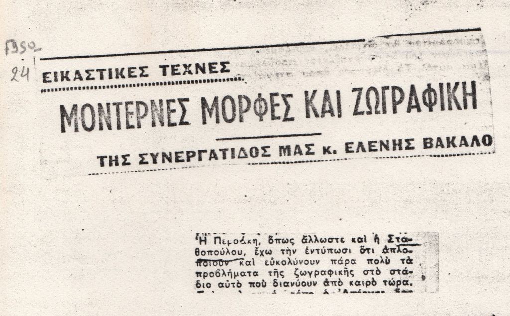 Φωτοαντίγραφο αποκόμματος, έντυπο, χαρτί, 6,0×9,5 εκ., όπου δημοσιεύεται απόσπασμα κριτικής της Ε. Βακαλό για την Ελένη Σταθοπούλου.