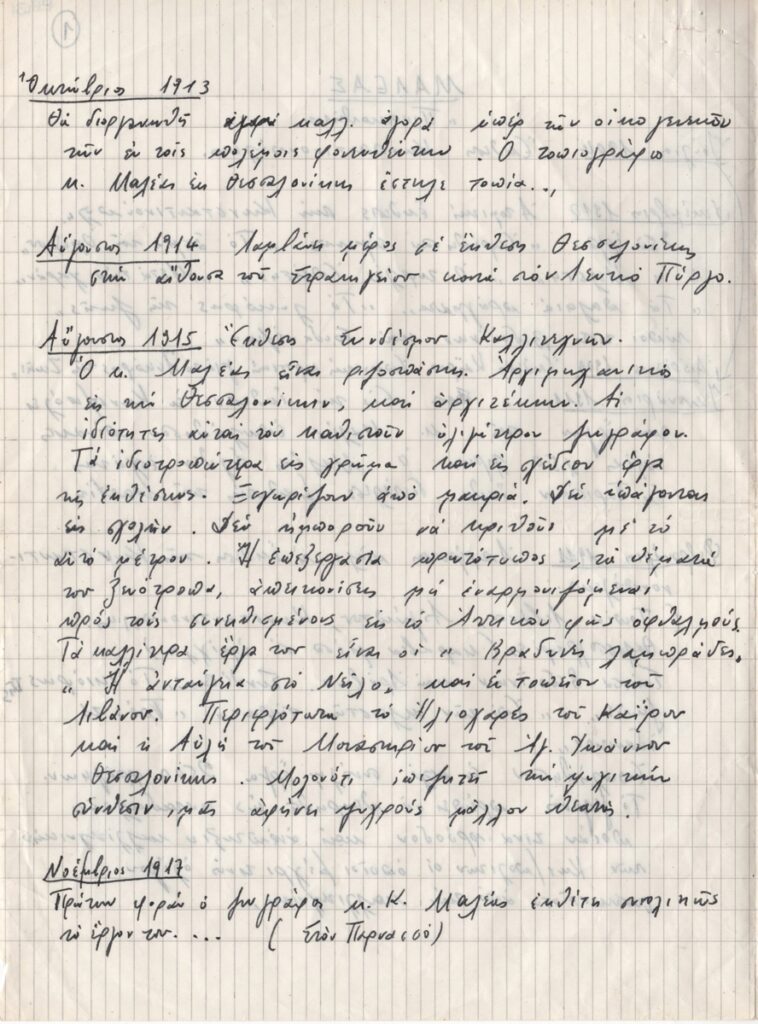 Κείμενο, χειρόγραφη, με μαύρο μελάνι, στα ελληνικά, χαρτί, 4 φφ.,28,7×21,1 εκ. Αποδελτίωση αναφορών στον ζωγράφο Κωνσταντίνο Μαλέα στο περιοδικό “Πινακοθήκη” κατά την περίοδο 1904-1929.