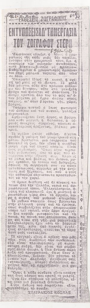 Φωτοαντίγραφο, χαρτί, 21×7 εκ., στα ελληνικά, δημοσίευσης κριτικής έκθεσης του Γεράσιμου Στέρη.