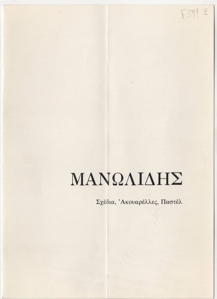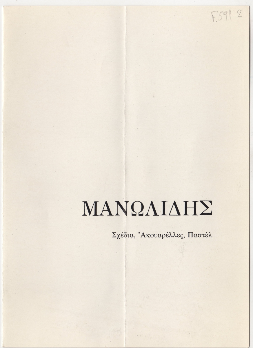 Έντυπο, χαρτόνι αναδιπλωμένο, 23,5×17 εκ., στα ελληνικά και αγγλικά, ατομικής έκθεσης ζωγραφικής του Θεόδωρου Μανωλίδη. Περιέχει βιογραφικό σημείωμα και εικονογράφηση.