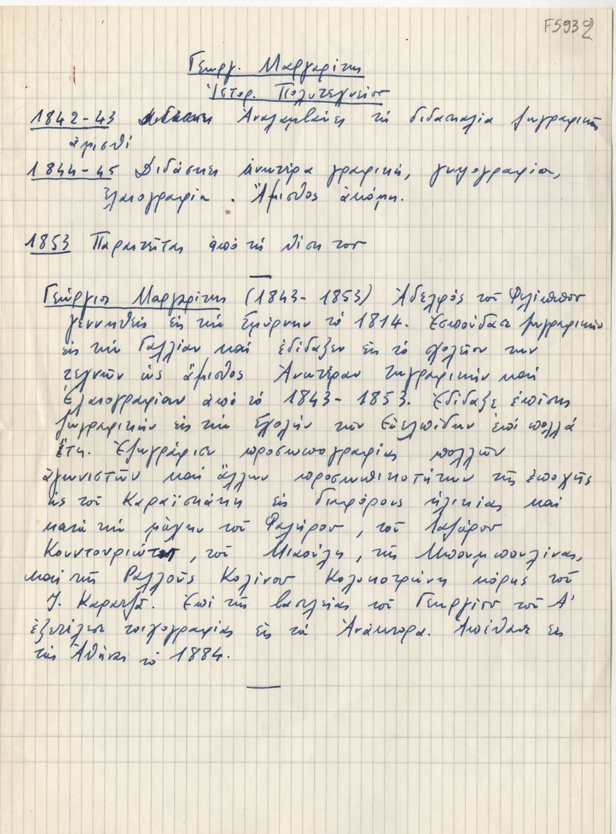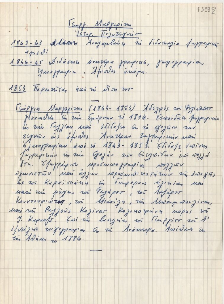 Βιογραφικό, χειρόγραφο, χαρτί, 28,5×21 εκ., στα ελληνικά, του Γεώργιου Μαργαρίτη.