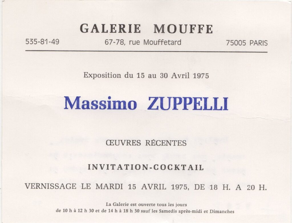 Πρόσκληση, χαρτόνι, 10,5×13,5 εκ., στα ιταλικά, έκθεσης του Massimo Zuppelli στο Παρίσι.