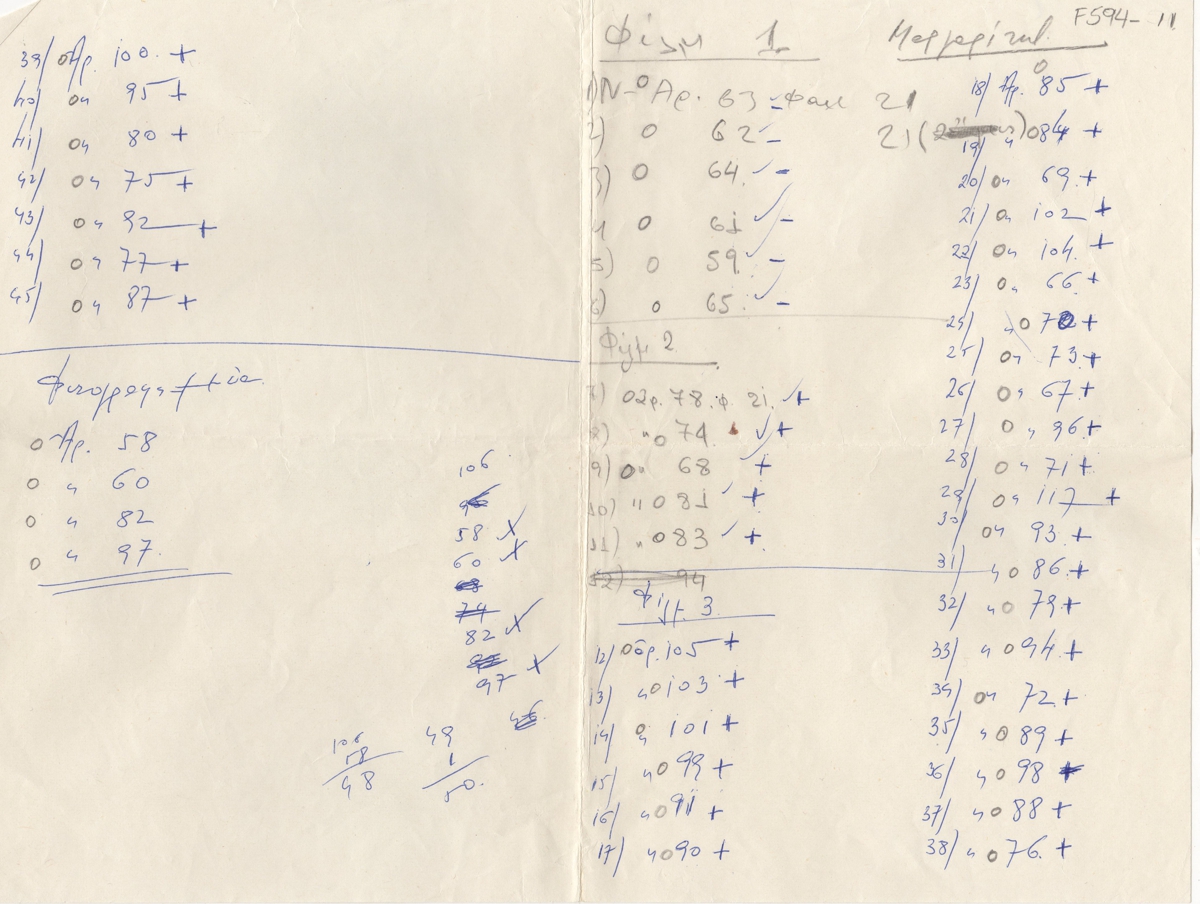 Χειρόγραφος κατάλογος φωτογραφιών, χαρτί, 21,5×29 εκ., στα ελληνικά, έργων του Φίλιππου Μαργαρίτη.