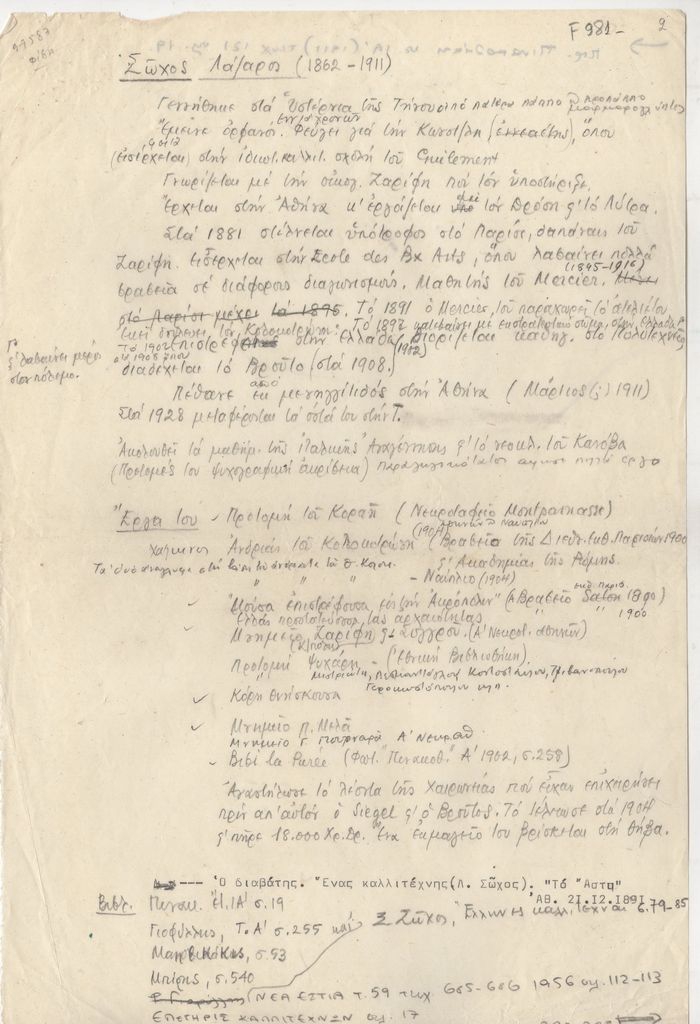 Βιογραφικό, χειρόγραφο, χαρτί, 30×20 εκ., στα ελληνικά, του Λάζαρου Σώχου.